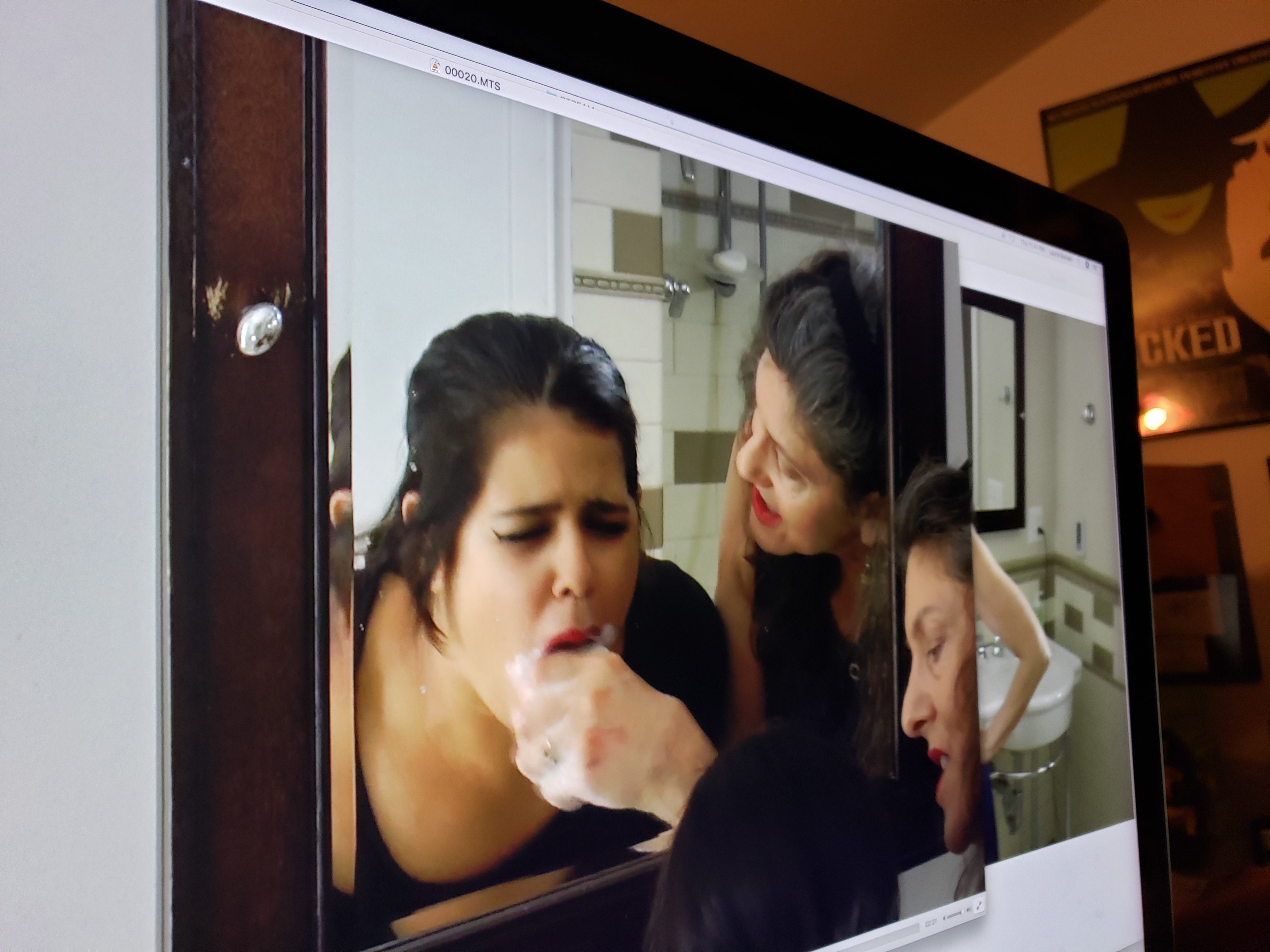 Always needing to be informed about actors’ boundaries… I asked Raven how far I could go with the mouth soaping. She pulled out her lipstick and said as she laid on another thick layer of deep red paint.