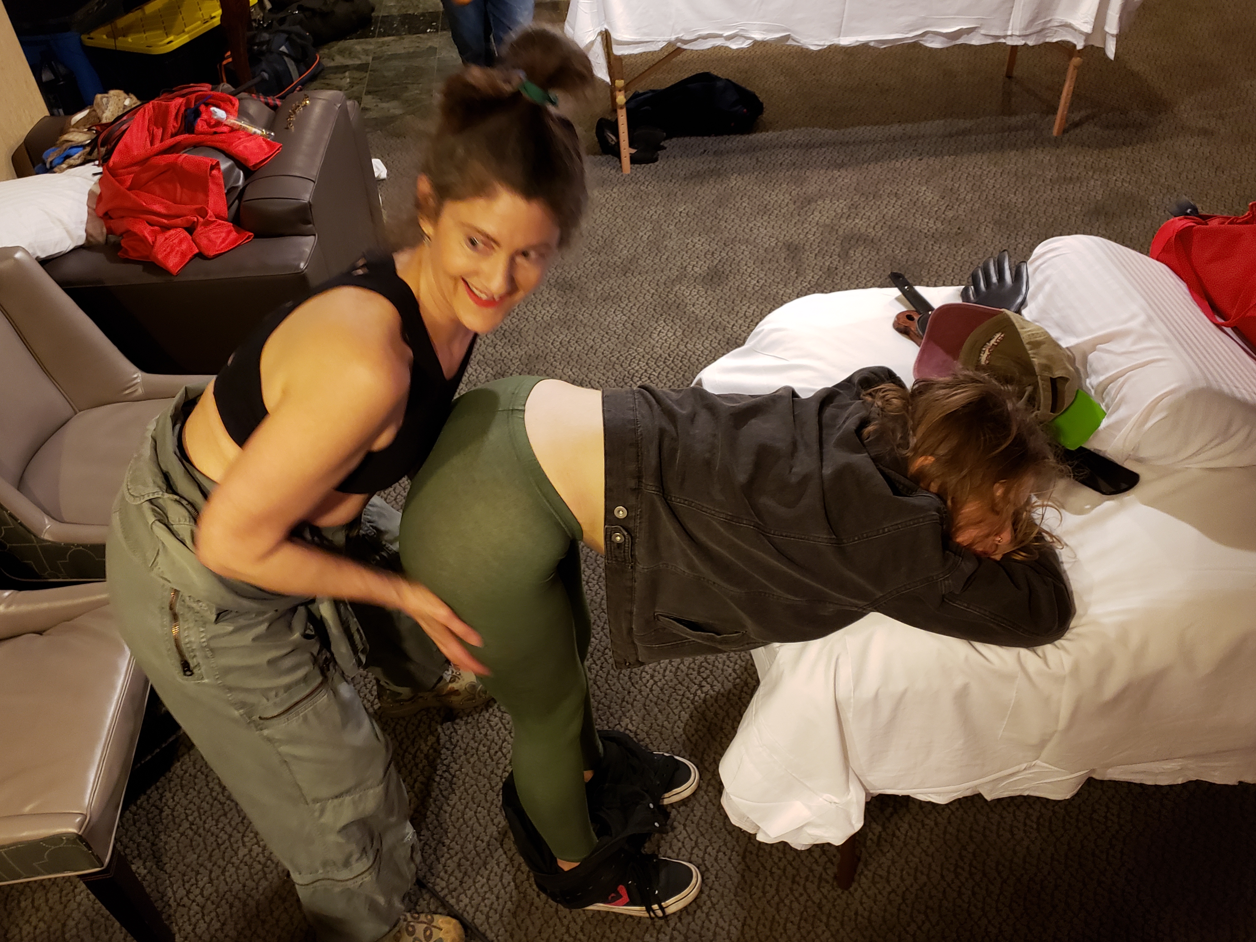 Sarah Gregory getting ready for a Spanking Party